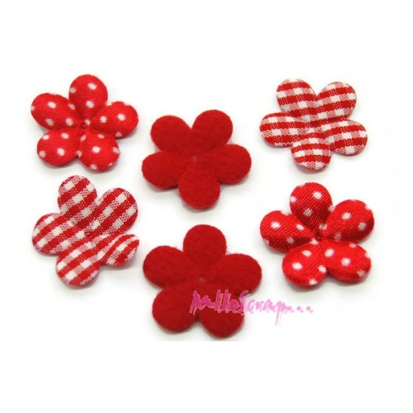 Description de Appliques petites fleurs tissu rouge – 6 pièces