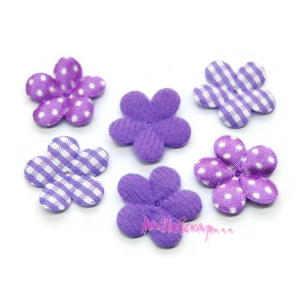Description de Appliques petites fleurs tissu violet – 6 pièces