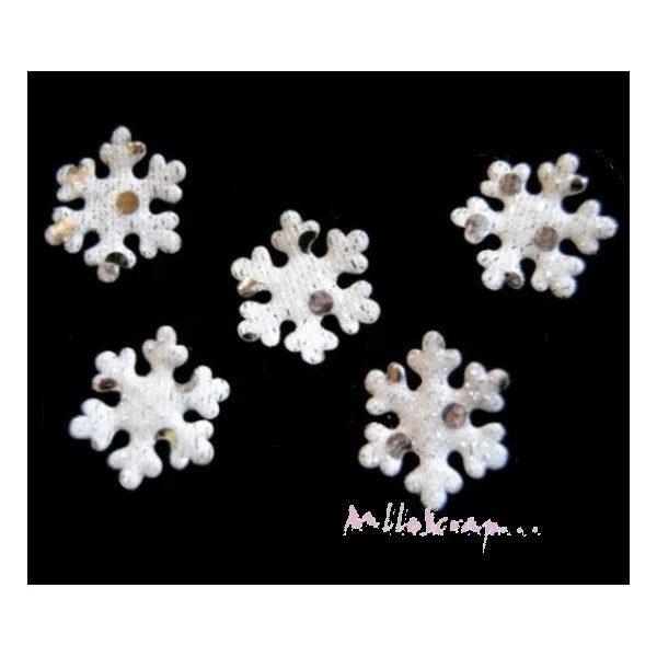 Description de Appliques petits flocons de neige tissu blanc – 5 pièces