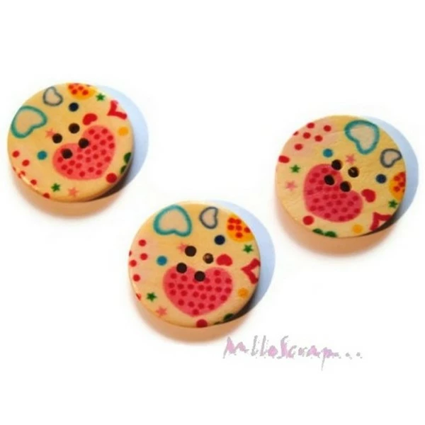 Données techniques pour Boutons bois décorés cœurs – 5 pièces