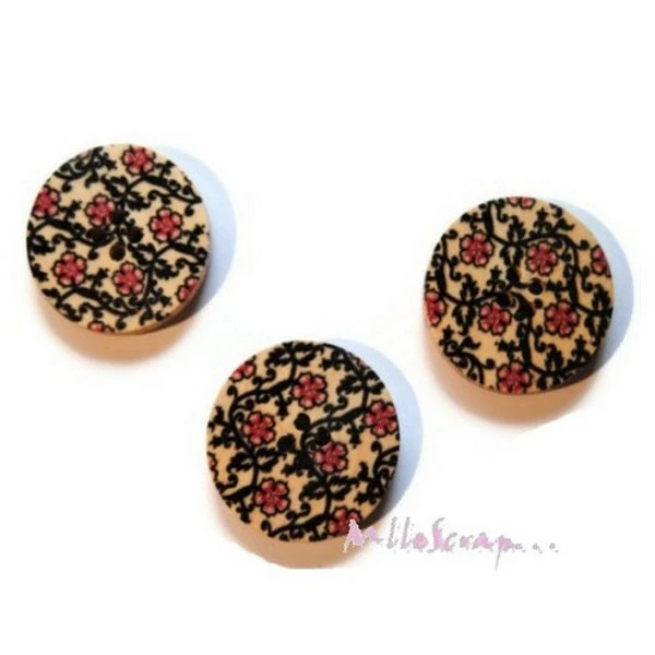 Données techniques pour Boutons bois décorés fleurs – 5 pièces
