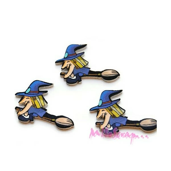 Données techniques pour Boutons bois sorcières halloween – 3 pièces