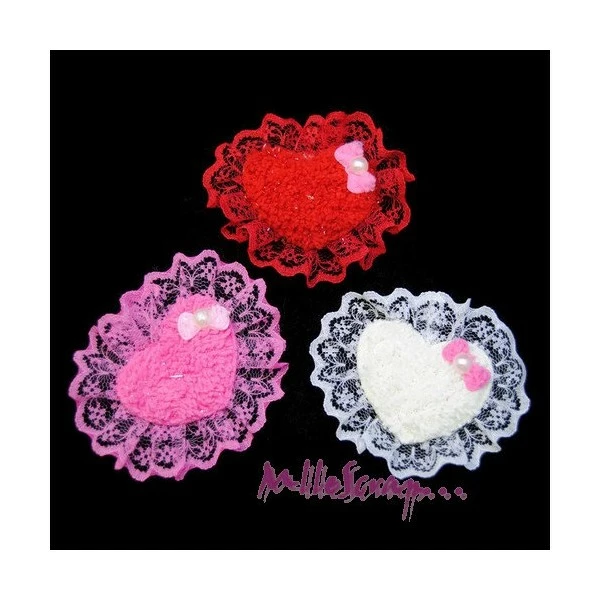 Description de Grands cœurs tissu dentelle – 3 pièces