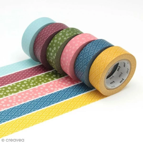 Le masking tape MT (Liberty) est repositionnable, souple, vous pouvez écrire dessus et le découper à la main ou aux ciseaux. Vous pourrez l’appliquer sur du papier, du carton, du verre, du métal, du plastique, etc. Il est aussi appelé papier washi, à cause de son origine japonaise.