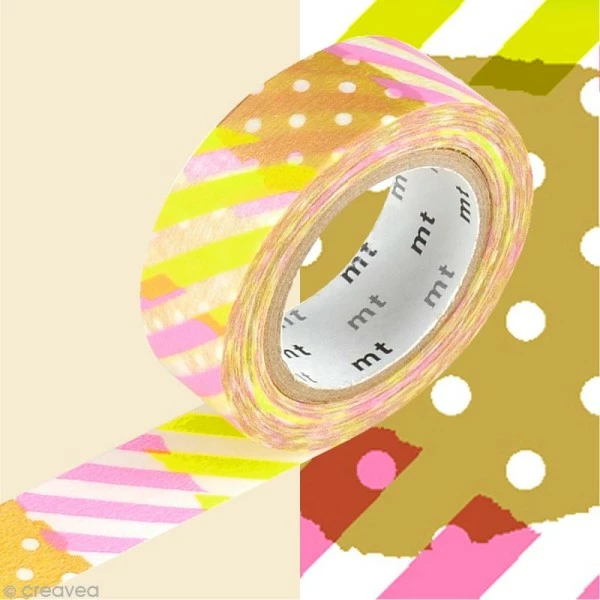 Le masking tape transparent Pois et rayures couleur Rose et vert anis est un rouleau de papier adhésif décoratif, repositionnable à l’infini. C’est un accessoire très utilisé en scrapbooking, en carterie mais aussi en Home Deco.