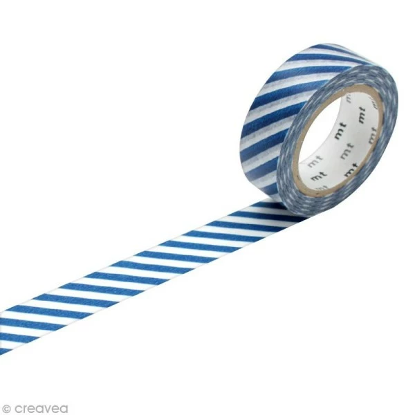 Ce Masking Tape Bleu marine motifs Rayures est un rouleau de papier adhésif décoratif, repositionnable à l’infini. Très utilisé en scrapbooking, le masking tape pourra aussi vous servir en Home Deco.