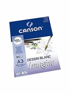 Canson Imagine Bloc Papier à Dessin 50 Feuilles 200g A3 29,7 X 42 Cm 50 Feuilles Blanc Pur