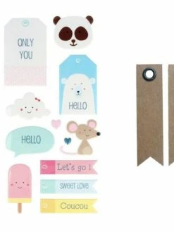 AUCUNE Autocollants Puffies XL Love Story + 20 étiquettes Kraft Fanion