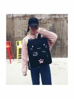 BLACK SUGAR Sac A Dos Solide Kawaii Noir Patte Rose Oreille Chat Lycéen Écolière Pratique Harajuku