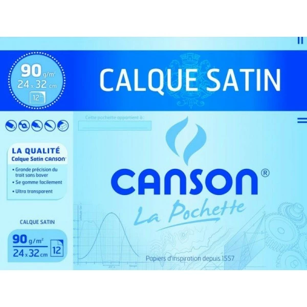 Description de Papier Calque Satin Canson – Pochette – 90g/m² 12 feuilles 24×32
