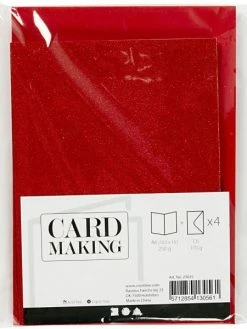 Creativ Company Cartes Doubles Et Enveloppes – Paillettes Rouges – 10,5 X 15 Cm – 8 Pcs