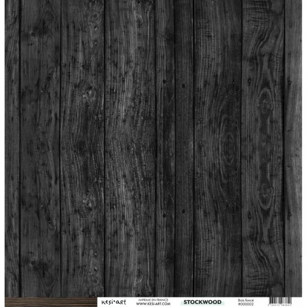 Feuille de scrapbooking recto verso 30,5cm x 30,5cm KESI’ART imitation planche de bois foncé Grammage200g/m2