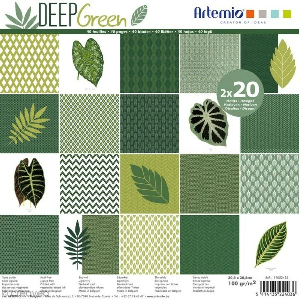Set de 40 feuilles de papier scrapbooking Artemio, de la collection Deep green, composé de papiers imprimés à motifs. Cet assortiment de papiers scrap Deep green vous permettra de créer tout un univers graphique original pour vos créations scrapbooking, carterie, vos tableaux home déco et tous vos supports à décorer. Le papier illustré Deep green est un papier scrap de qualité, assurément tendance pour tout décorer !