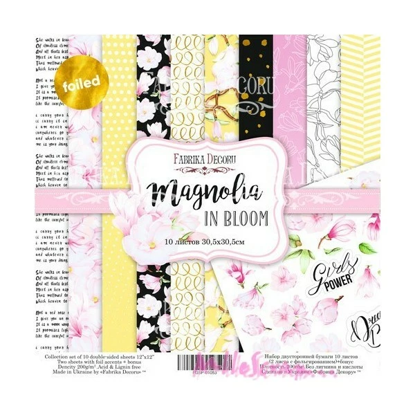 Description de Papiers imprimés Magnolia in Bloom, 30 X 30 cm, Fabrika Decoru – 12 pièces