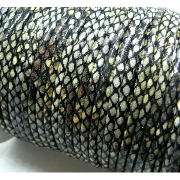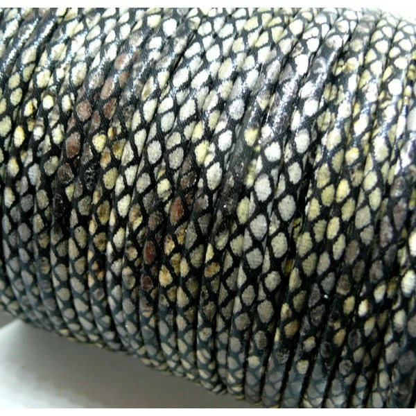 Description de H6A301 Lot de 3 mètres cordon 3 mm Imitation simili cuir serpent Gris Noir