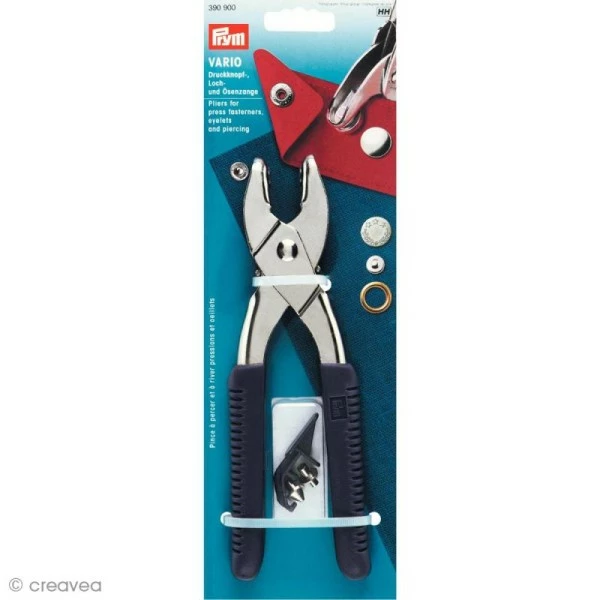 La pince Vario de Prym est un outil extrêmement pratique qui vous permettra de poser avec précision des oeillets, des rivets, des boutons de jeans ou encore des boutons pression. Cette pince vous est vendue avec une matrice permettant de percer le tissu. En effet, la pince vendue en l’état ici vous permettra de faire uniquement les trous.