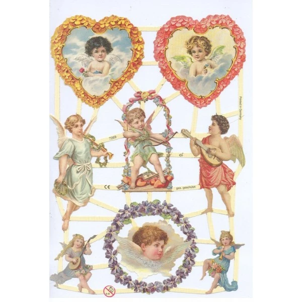 Données techniques pour Planche de Chromo Découpis Die cut Ange Cœur Fleurs ECLAT 7269e Carterie Collage Ernst Freihoff
