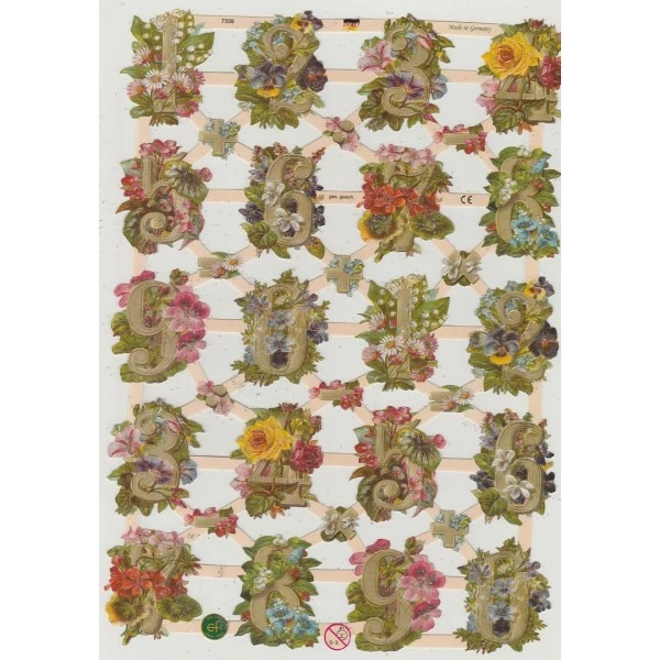 Données techniques pour Planche de Chromo Découpis Die cut Chiffres MICA 7339g Carterie Collage Ernst Freihoff