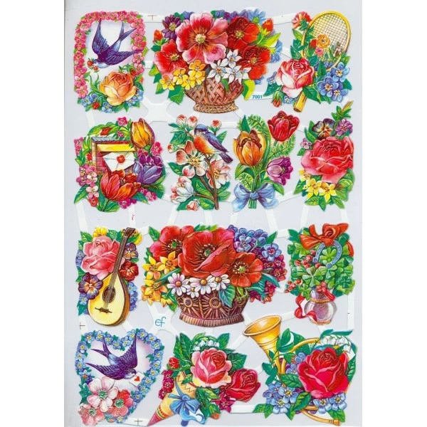 Données techniques pour Planche de Chromo Découpis Die cut Fleurs Hirondelle ECLAT 7001e Carterie Collage Ernst Freihoff