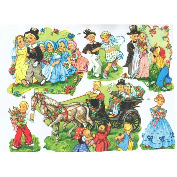 Description de Planche de Chromo Découpis Die cut Mariage ECLAT 7148e Carterie Collage Ernst Freihoff