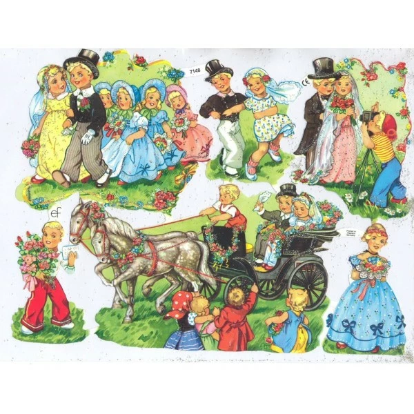Description de Planche de Chromo Découpis Die cut Mariage MICA 7148g Carterie Collage Ernst Freihoff