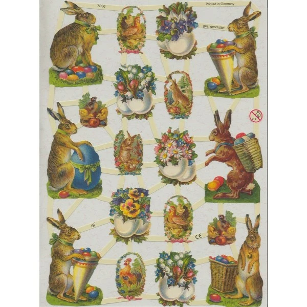Description de Planche de Chromo Découpis Die cut Pâques Lapin ECLAT 7256e Carterie Collage Ernst Freihoff