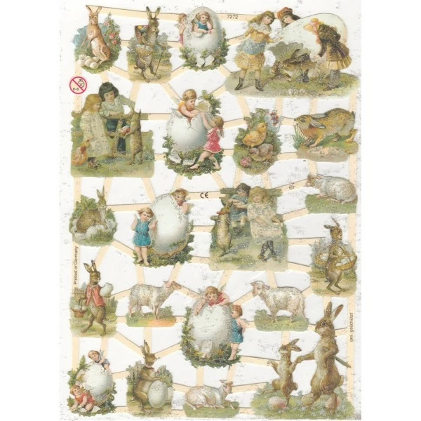 Données techniques pour Planche de Chromo Découpis Die cut Pâques Œuf Lapin MICA 7272g Carterie Collage Ernst Freihoff