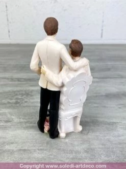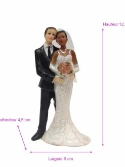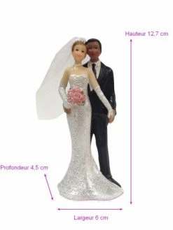 Doge Couple Mariés Mixte S’enlaçant, Haut. 12,7 Cm, Figurine Femme Noire Et Homme Blanc En Résine