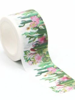 THE LOVELY FACTORY Masking Tape Désert Cactus Flamant Rose – 25mm X 5m – G068