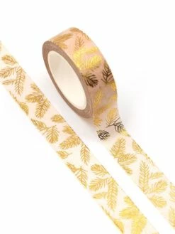 THE LOVELY FACTORY Masking Tape Métallisé épines De Pin Dorée 15mm X 10m