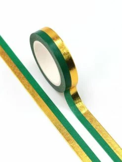 THE LOVELY FACTORY Masking Tape Métallisé Rayures Or Et Vert 10mm X 10m