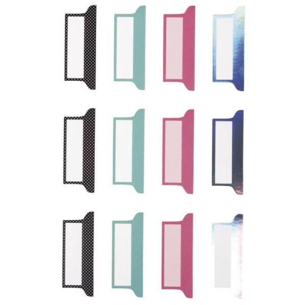 Stickers pour bullet journal. Ces simples onglets pour bullet journal vous permettent de customiser votre emploi du temps en illustrant tous les temps fort de votre agenda. Les onglets autocollants sont de couleurs noir, bleu turquoise, rose fuchsia, bleu marine.