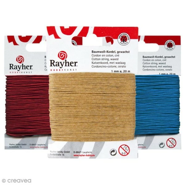 Données techniques pour Cordon coton ciré – 1 mm x 20 m – 17 couleurs