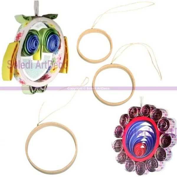Description de Lot de 3 Pendentifs Cercles pour Papier Quilling, Anneaux en papier mâché, de 5 à 7 cm