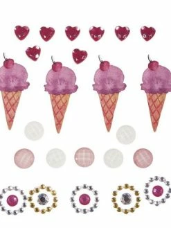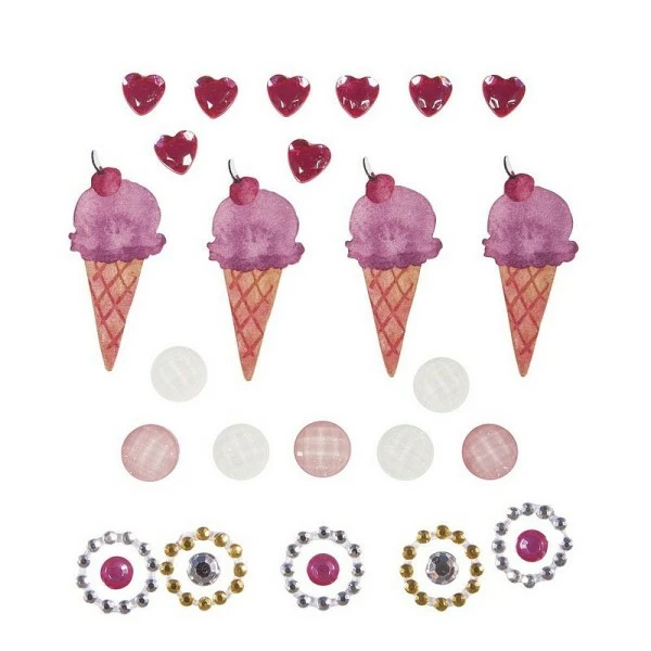 Description de Stickers autocollants à relief Glaces et Strass , 24 pièces de 0,8 cm à 4 cm