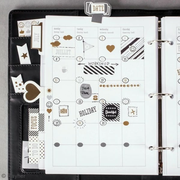 N’oubliez plus les anniversaires et les dates spéciales. Avec ces stickers Symboles et événements aux coloris noir, blanc, doré, gris chacun de vos rendez-vous sera unique, vos listes deviendront plus vivantes et les jours de la semaine seront pétillants et vous mettront de bonne humeur !