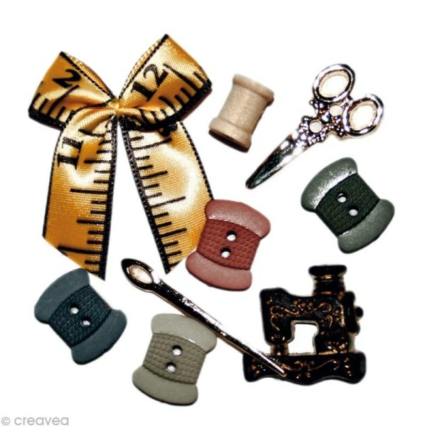 Assortiment de 9 boutons décoratifs et miniatures Récréatys De fil en aiguille, en plastique pour customisation, couture et décoration.