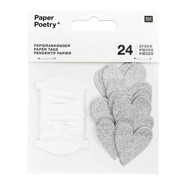 Description de 24 Étiquettes À Suspendre Petits Coeurs Argentés