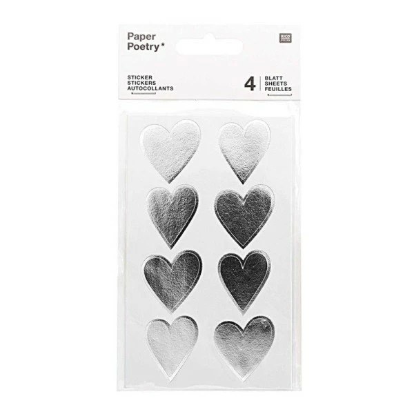 4 feuilles d’autocollants cœurs argentés. Customisez à l’infini avec ces autocollants cœurs argentés !