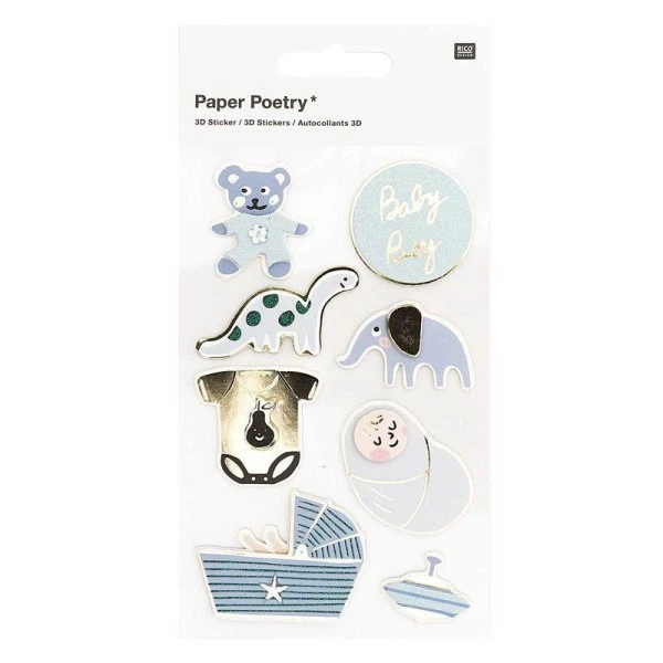 Avec ces 8 stickers 3D, décorez vos cartes, carnets et autres projets scrapbooking pour annoncer la naissance d’un petit garçon ! Dimensions19 x 9,5 cm.