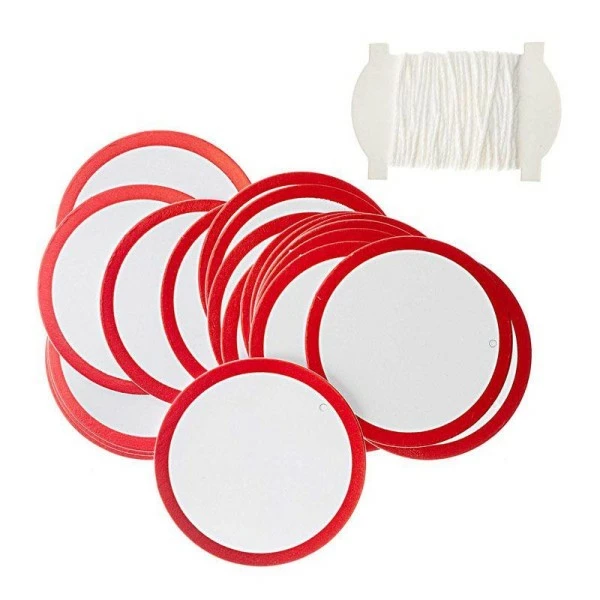 Description de Etiquettes à suspendre rondes blanches à contour rouge
