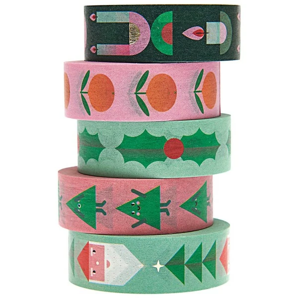 Description de Masking Tape – Noël Mix – 1,5 x 10 m – 5 pc