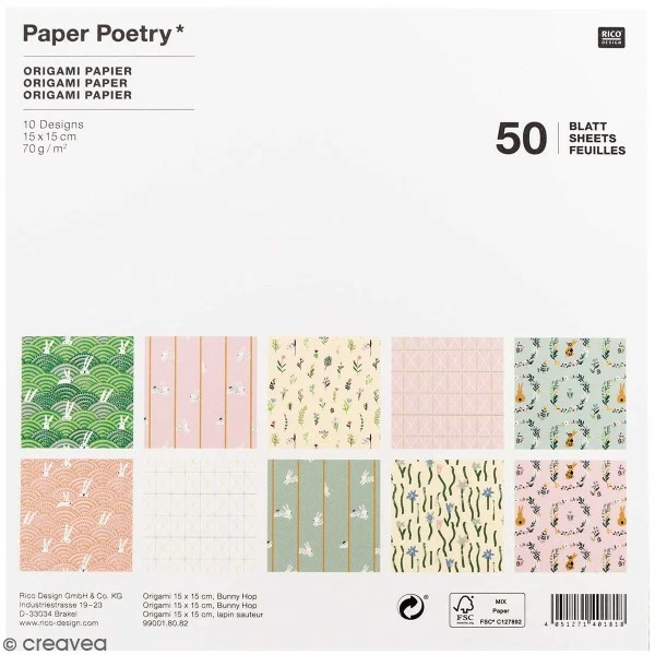 Avec ses couleurs fraîches et tendances, ce bloc de papier origami Rico Design aux différents motifs (Lapin, fleurs, Oeuf de Pâques…), devrait vous inspirer mille et une merveilles pour vos créations sur le thème de Pâques.