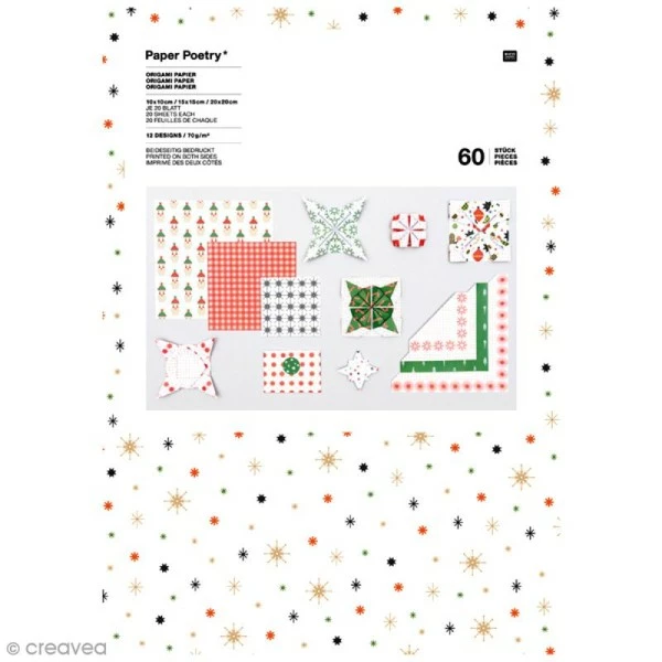Description de Papier origami Puristic Christmas – 3 tailles – 60 feuilles