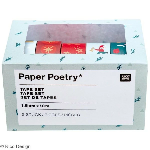 Description de Set de masking tape – Noël Classique – 1,5 cm x 10 m – 5 pcs