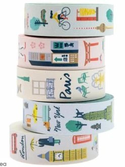 Description de Set de masking tape – Villes du monde – 1,5 cm x 10 m – 5 pcs