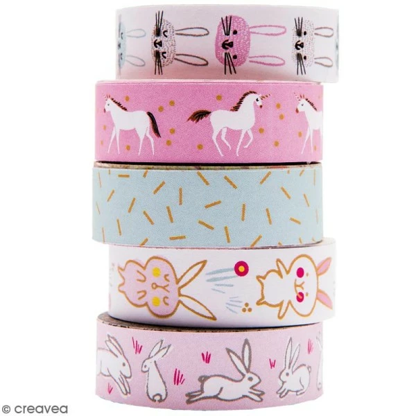 Données techniques pour Set de masking tape – Wonderland lièvres – 1,5 cm x 10 m – 5 pcs