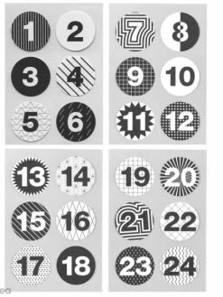 Description de Stickers Calendrier de l’avent Noir et Blanc 28 mm – 24 pcs
