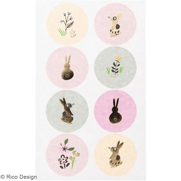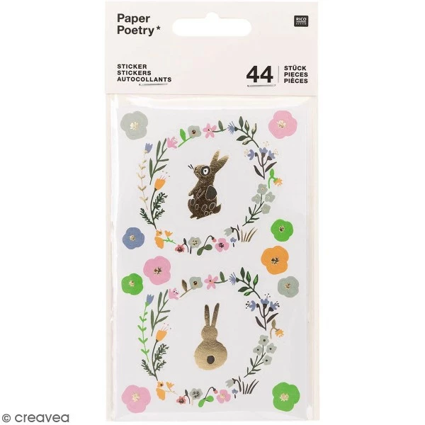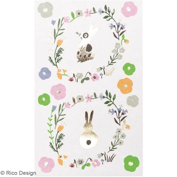 Ce lot d’autocollants en papier contient 44 autocollants de 1 à 6 cm environ. Grâce leurs motifs fleuris et ses petits lapins de Pâques, ces stickers seront parfaits pour personnaliser tous vos projets de scrapbooking et de décoration sur le thème de Pâques.