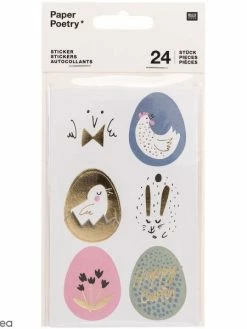 Description de Stickers en papier – Oeufs de Pâques – 24 pcs